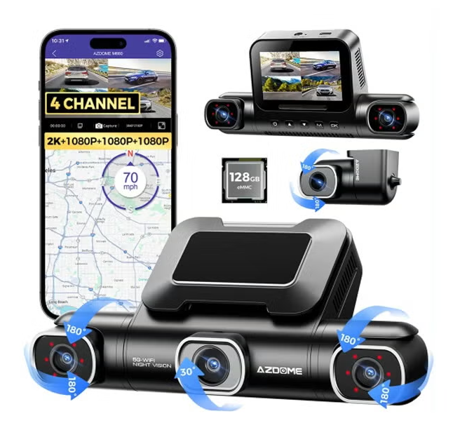 انسَ النقاط العمياء ومرحبًا بالتحكم الكامل في السيارة مع AZDOME M660، ملاكك الحارس 4 في 1 على الطريق. هذه القوة تتجاوز كاميرا المراقبة العادية، حيث تلتقط كل شيء من الأمام والخلف وحتى داخل السيارة، وكل ذلك بتفاصيل مذهلة